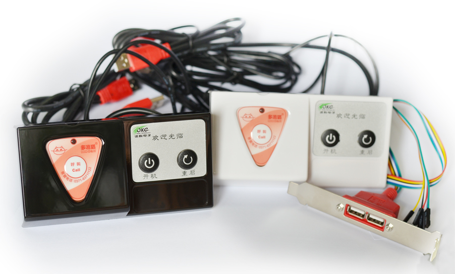 把電腦主機(jī)的開關(guān)鍵移到了桌面上,可移動(dòng)、可固定,所以也叫電腦桌面移動(dòng)開關(guān),網(wǎng)吧電腦桌面延長(zhǎng)開關(guān),網(wǎng)吧電腦桌面控制模塊等名稱,它不僅可將開關(guān)鍵和重啟鍵放在桌面上,附帶的USB接口也連接到了桌面上。