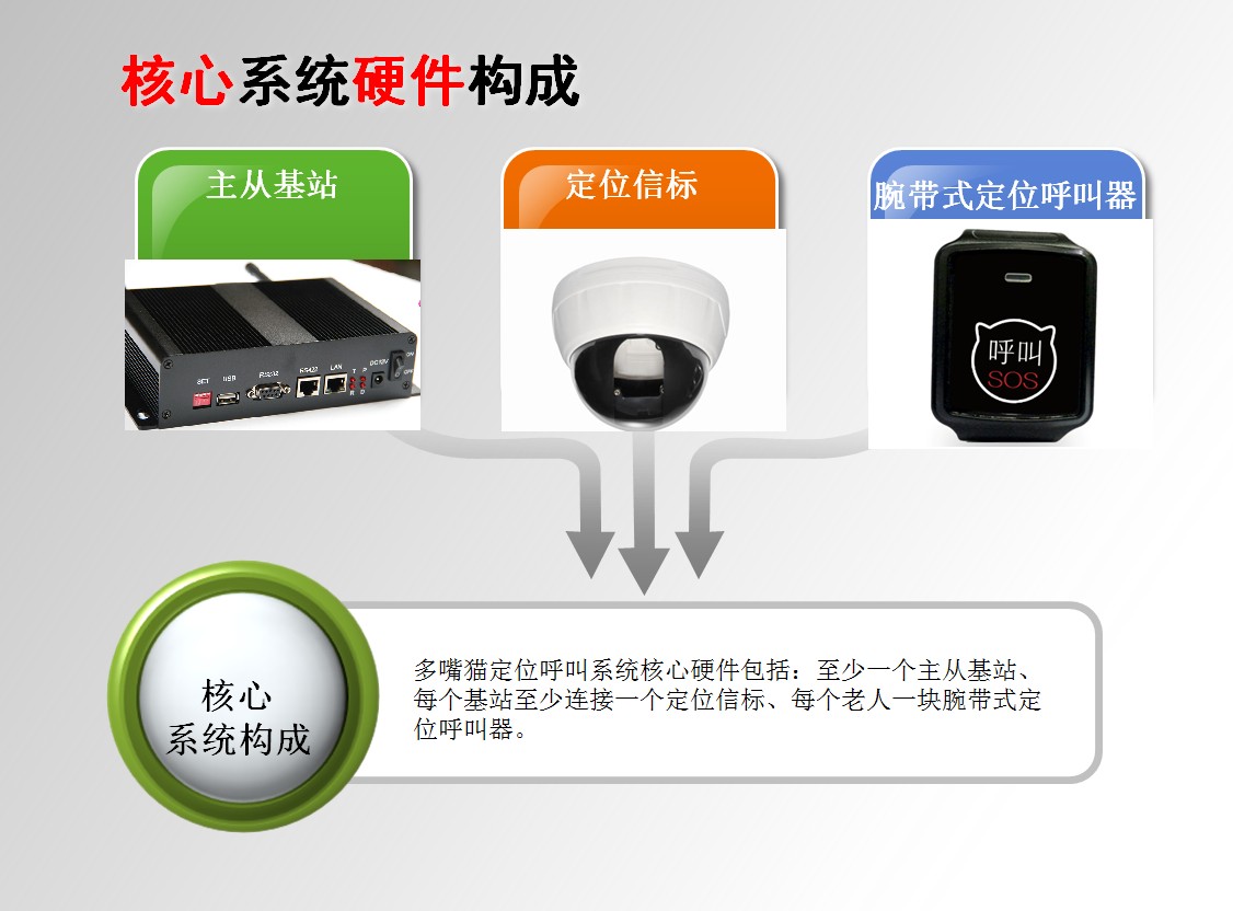 多嘴貓人員定位呼叫系統(tǒng)將整個社區(qū)的室外區(qū)域納入無線定位救助監(jiān)護范圍,通過在園區(qū)建立整體定位數(shù)傳無線信號覆蓋,為每位老人和工作人員都配發(fā)腕帶式可充電無線定位呼叫器,具有區(qū)域定位,身份識別、緊急救助定位等綜合功能。